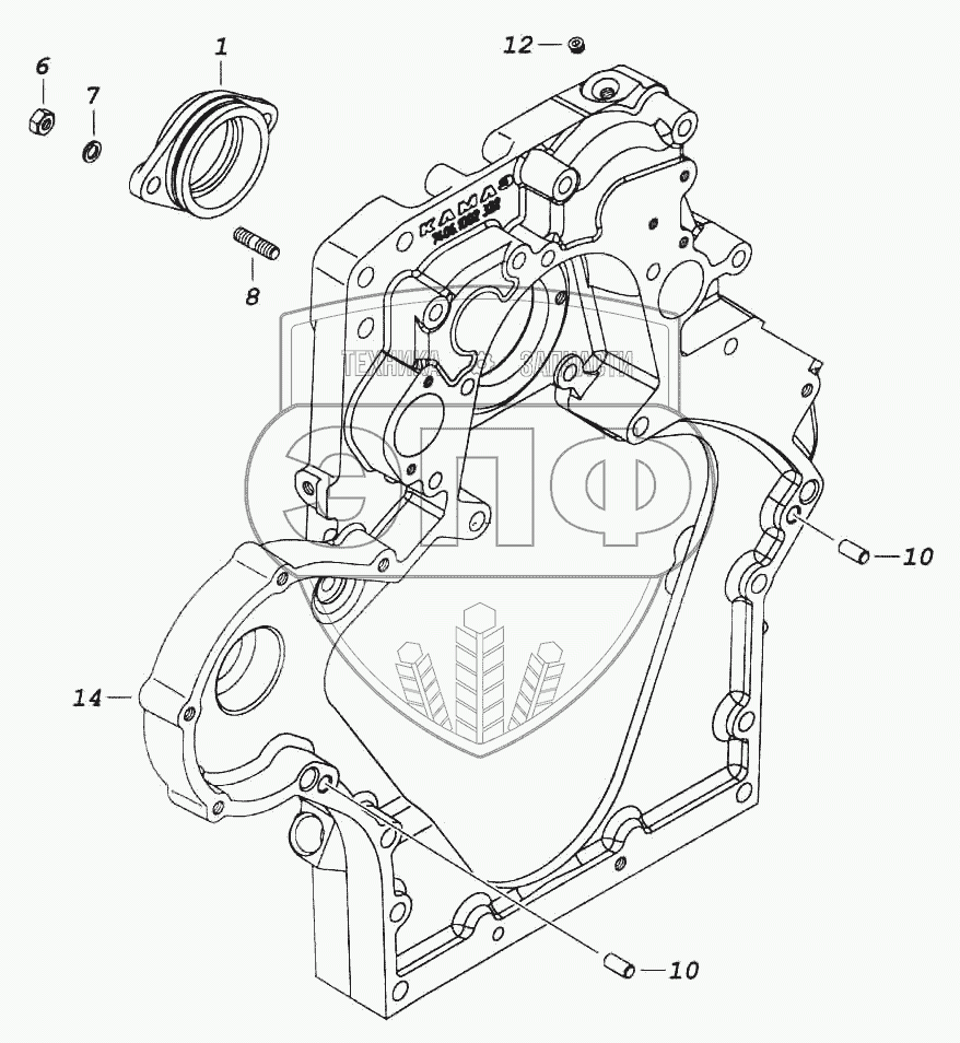 Каталог запасных частей к технике: Камский автозавод 6522. Картер агрегатов
