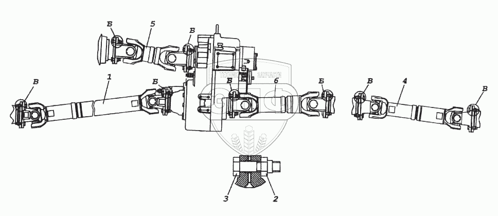 Каталог запасных частей к технике: Камский автозавод 6522. Установка карданных валов