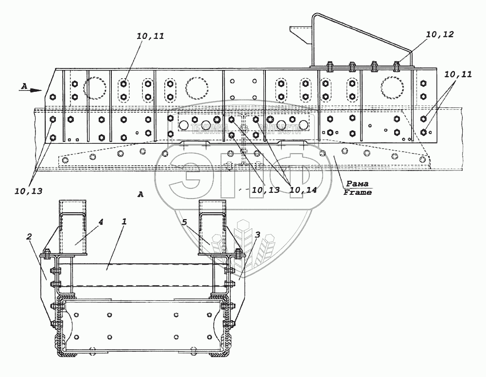 Каталог запасных частей к технике: Камский автозавод 6522. Установка надрамника