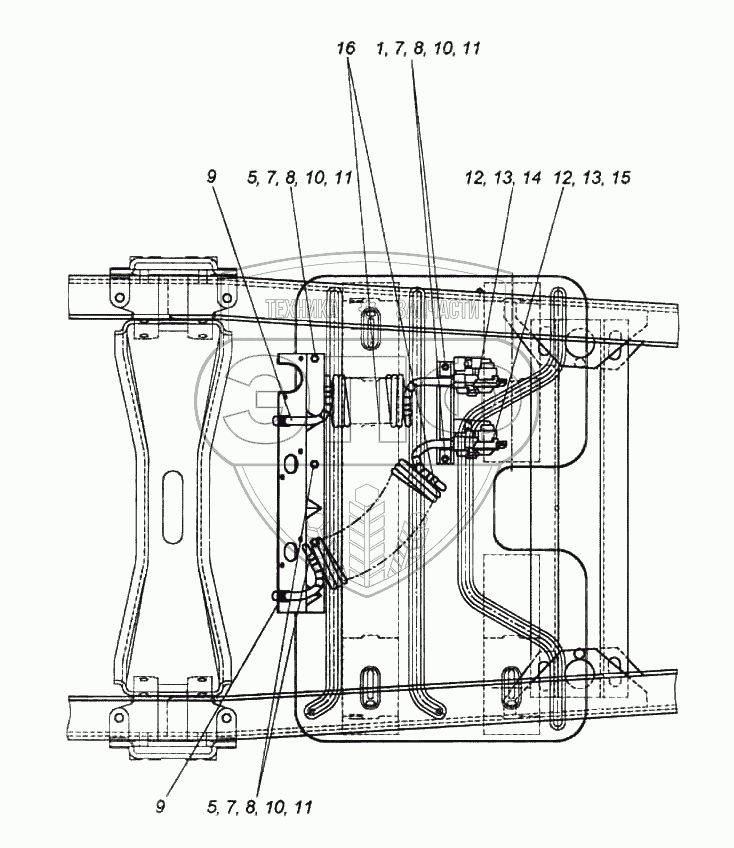 Каталог запасных частей к технике: Камский автозавод 6522. Установка пневмовыводов к полуприцепу