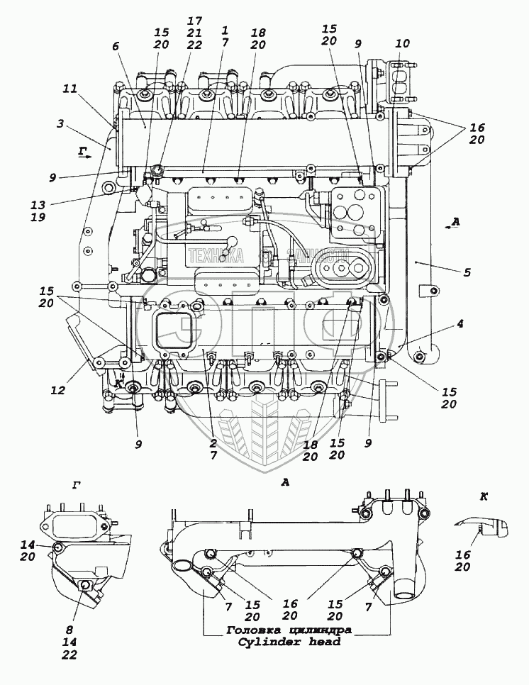 Каталог запасных частей к технике: Камский автозавод 6522. Установка системы впуска