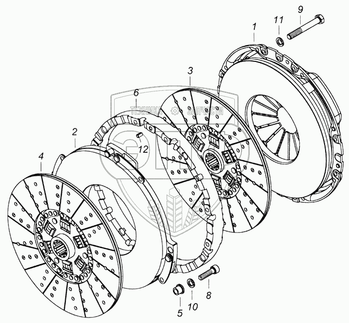 Каталог запасных частей к технике: Камский автозавод 6540. Сцепление в сборе