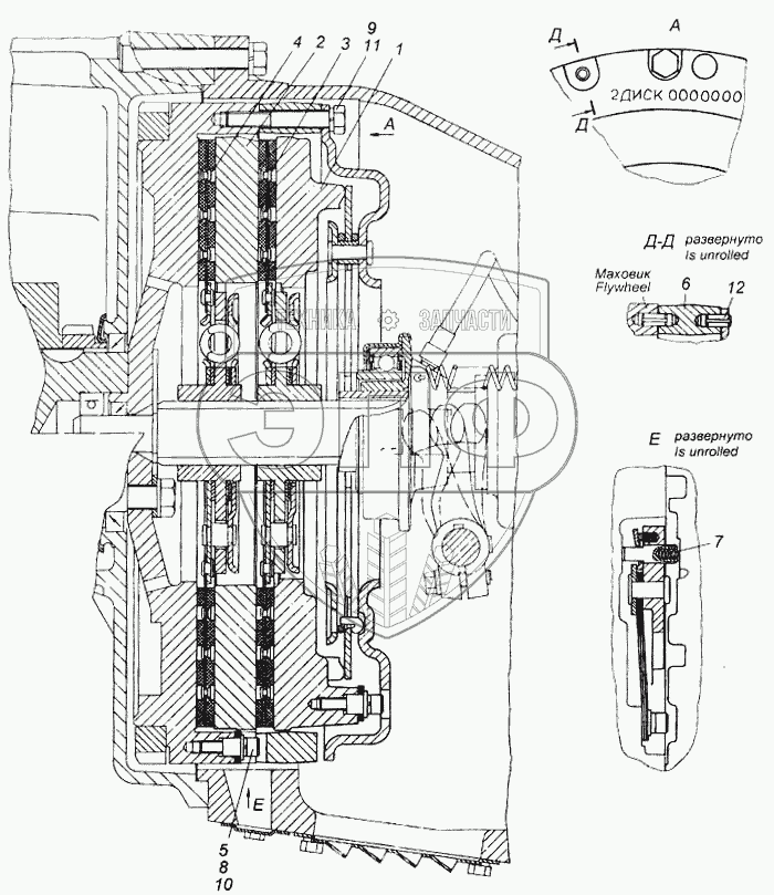 Каталог запасных частей к технике: Камский автозавод 6540. Сцепление в сборе