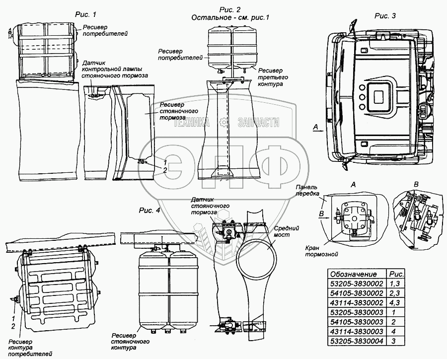 Каталог запасных частей к технике: Камский автозавод 6540. Установка датчиков аварийного давления