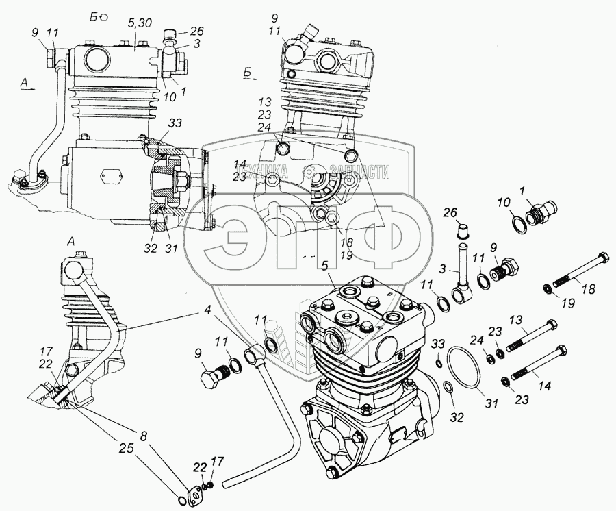 Каталог запасных частей к технике: Камский автозавод 6540. Установка компрессора