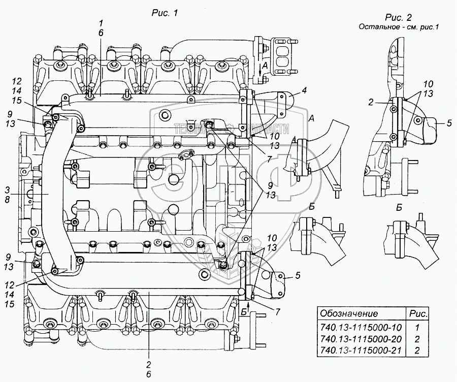 | 1 | 740.13-1115012 | Коллектор впускной правый в сборе | Нет на складе | |