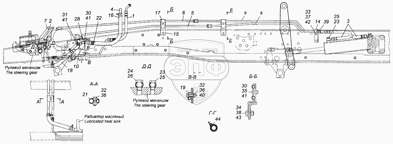 Каталог запасных частей к технике: Камский автозавод 6540. Установка трубопроводов рулевого управления