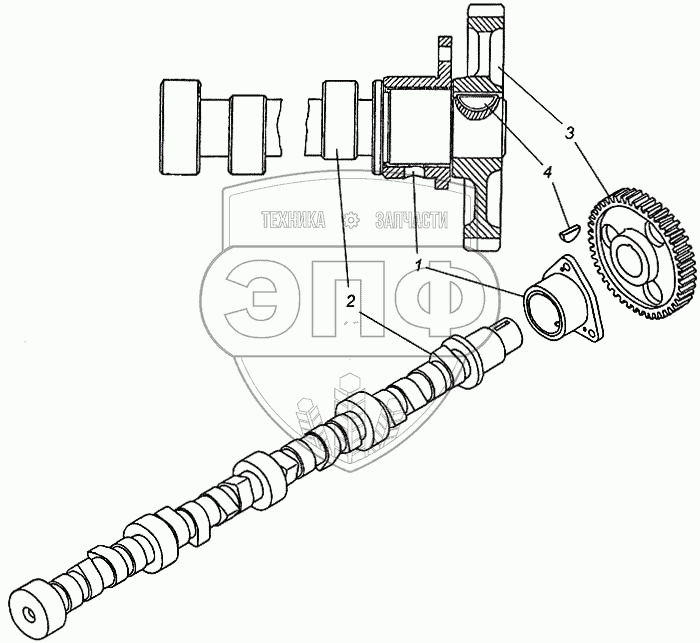 Каталог запасных частей к технике: Камский автозавод 6540. Вал распределительный в сборе