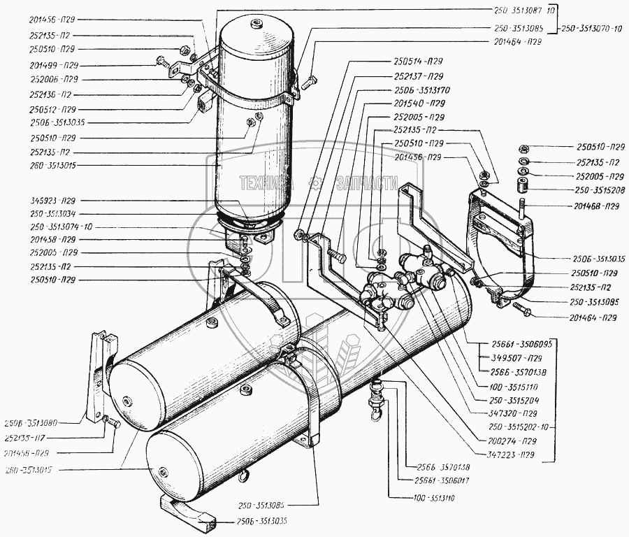 Каталог запасных частей к технике: КрАЗ-250. Баллоны воздушные
