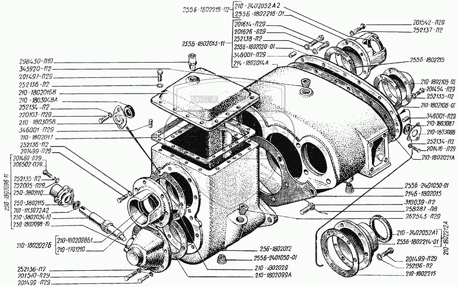 Каталог запасных частей к технике: КрАЗ-250. Коробка раздаточная (картеры)