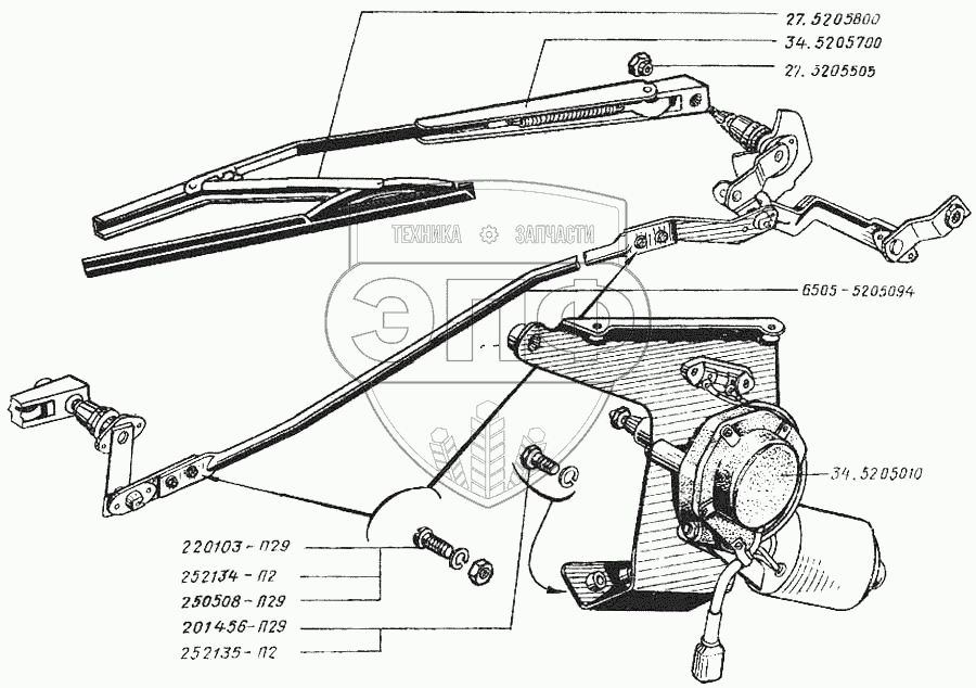 Каталог запасных частей к технике: КрАЗ-250. Стеклоочиститель (электрический привод)