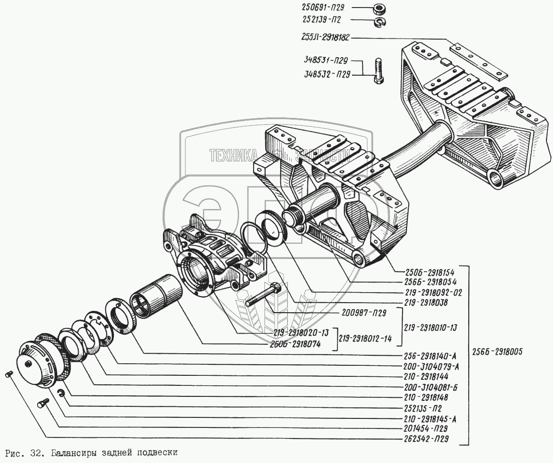 Каталог запасных частей к технике: КрАЗ-256. Балансиры задней подвески