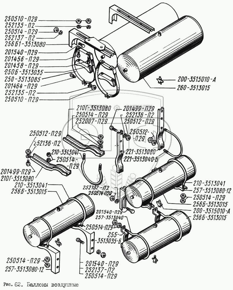 Каталог запасных частей к технике: КрАЗ-256. Баллоны воздушные