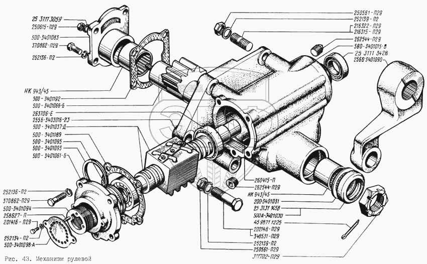 Каталог запасных частей к технике: КрАЗ-256. Механизм рулевой