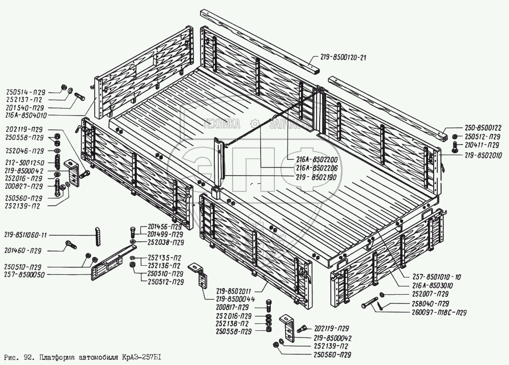 Каталог запасных частей к технике: КрАЗ-256. Платформа автомобиля КрАЗ-257Б1