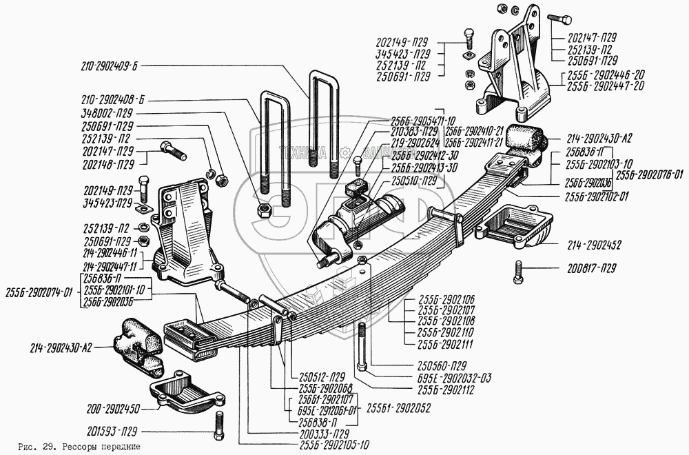 Каталог запасных частей к технике: КрАЗ-256. Рессоры передние