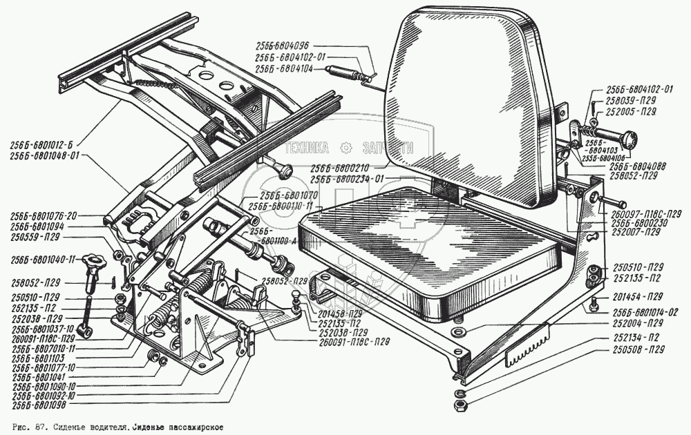 Каталог запасных частей к технике: КрАЗ-256. Сиденье водителя. Сиденье пассажирское