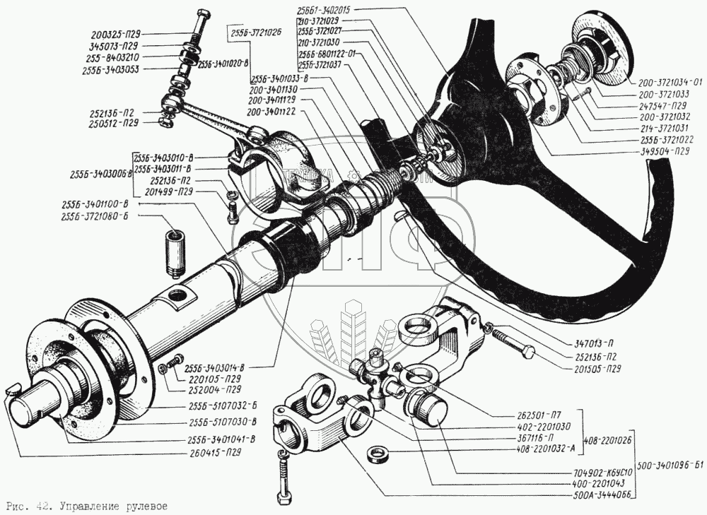 Каталог запасных частей к технике: КрАЗ-256. Управление рулевое