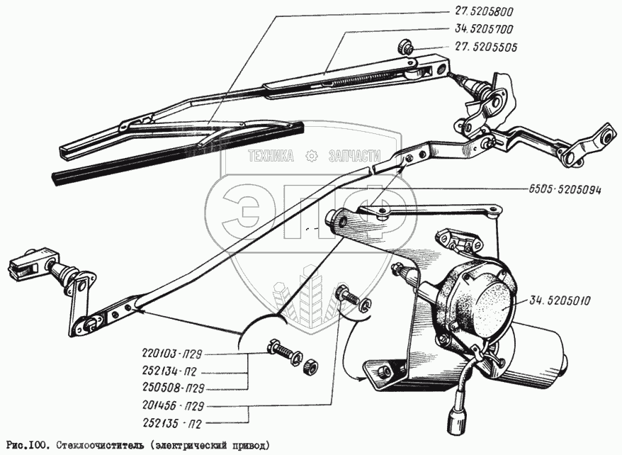 Каталог запасных частей к технике: КрАЗ-260. Стеклоочиститель (электрический привод)