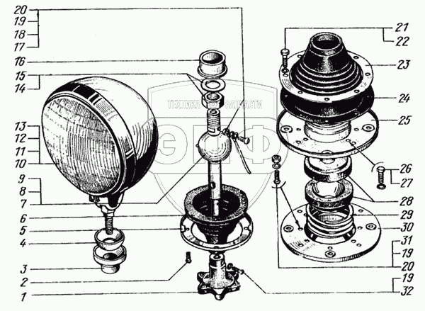 Каталог запасных частей к технике: КрАЗ-6443. Фара поворотная