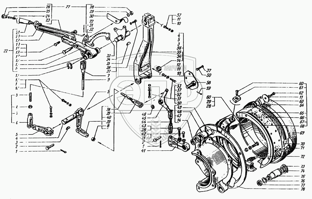 Каталог запасных частей к технике: КрАЗ-6443. Управление стояночной тормозной системой