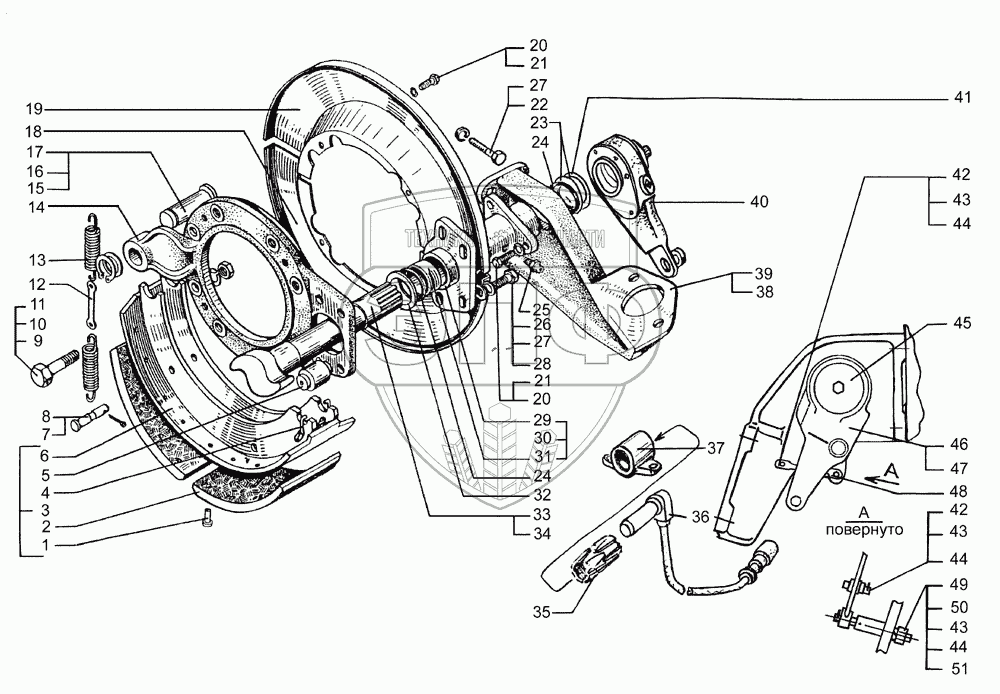 Каталог запасных частей к технике: КрАЗ-65053-02. Механизмы тормозные задние