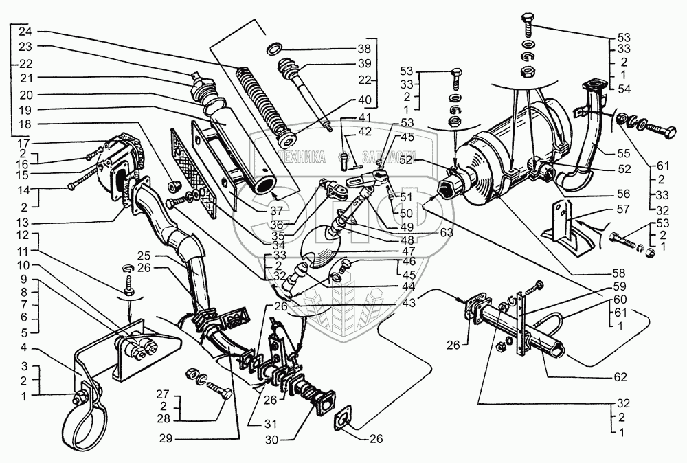 Каталог запасных частей к технике: КрАЗ-65053-02. Система выпуска отработавших газов