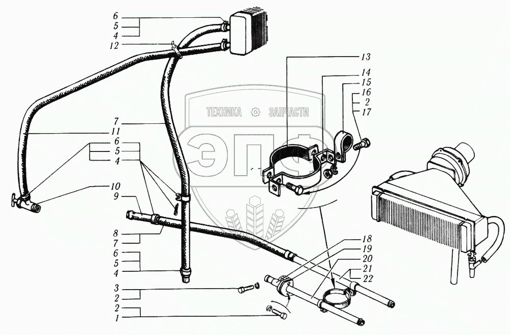 Каталог запасных частей к технике: КрАЗ-6510. Трубопроводы системы отопления кабины
