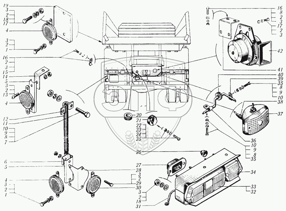 Каталог запасных частей к технике: КрАЗ-6510. Установка задних световых приборов