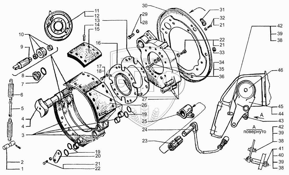 | 12 | 5133В2-3501005-000 | Тормозной механизм левый в сборе | Нет на складе | |