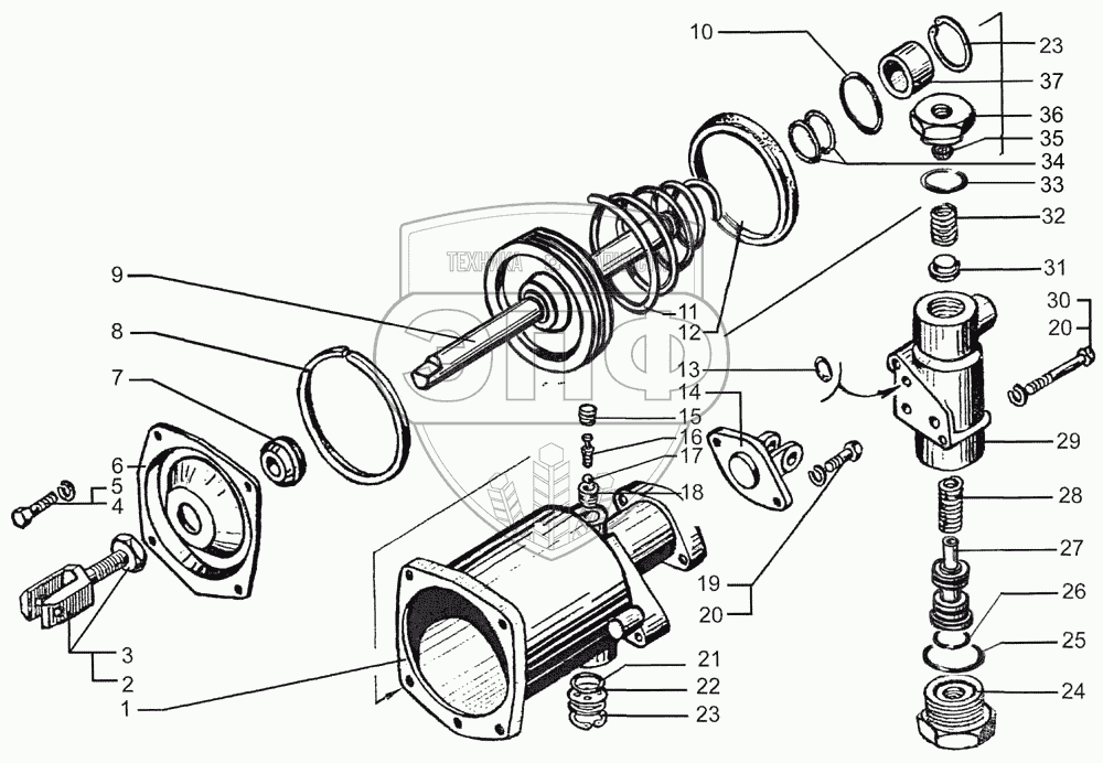 Каталог запасных частей к технике: КрАЗ-7133С4. Пневмогидроусилитель сцепления