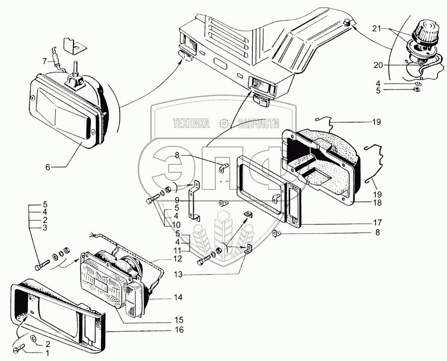 Каталог запасных частей к технике: КрАЗ-7133С4. Приборы световые передние
