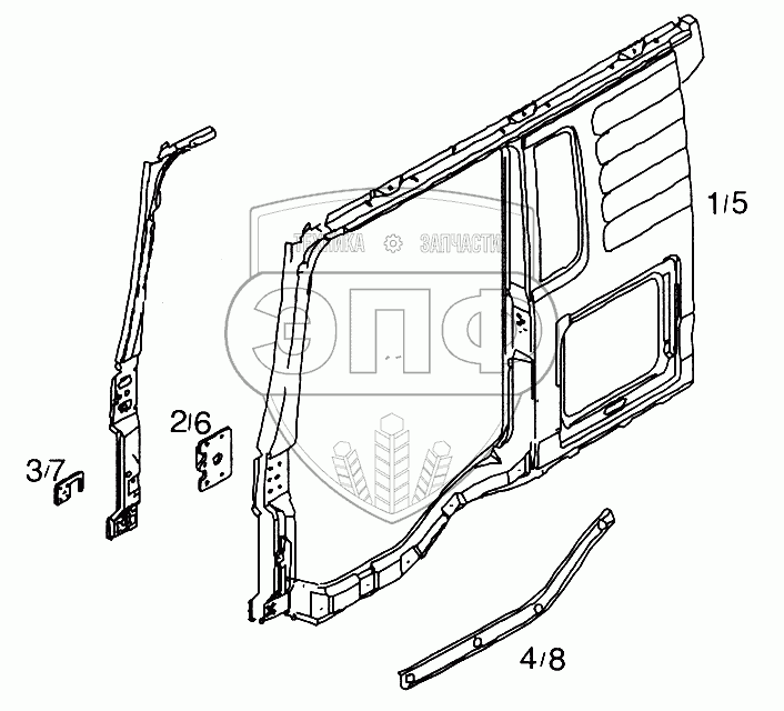 | 5 | 81.62510-4560 | Боковая стенная правая внешняя панель, кабина F99L/R31-37 | Нет на складе | |
