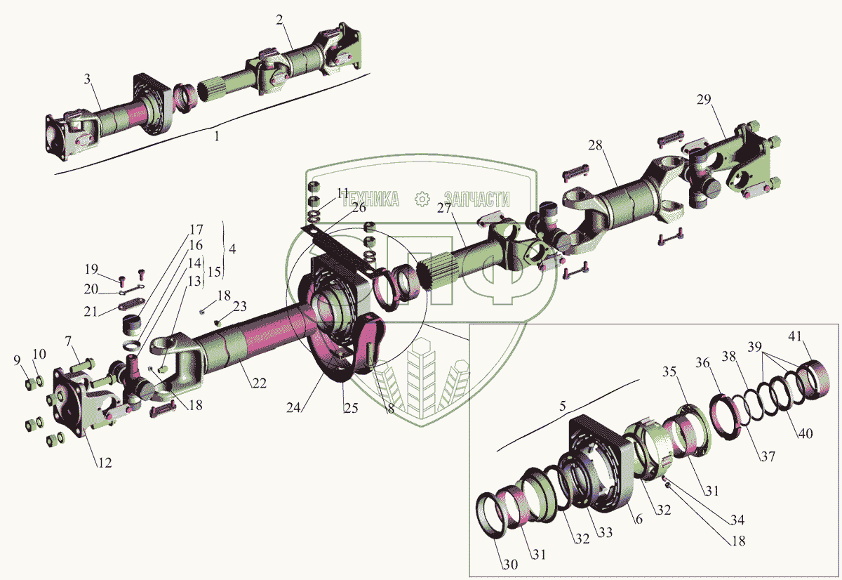 Каталог запасных частей к технике: МАЗ-437040 (Зубренок). Карданная передача
