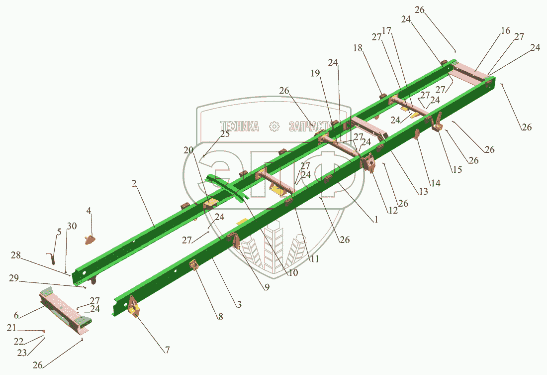 Каталог запасных частей к технике: МАЗ-437040 (Зубренок). Рама МАЗ-437141