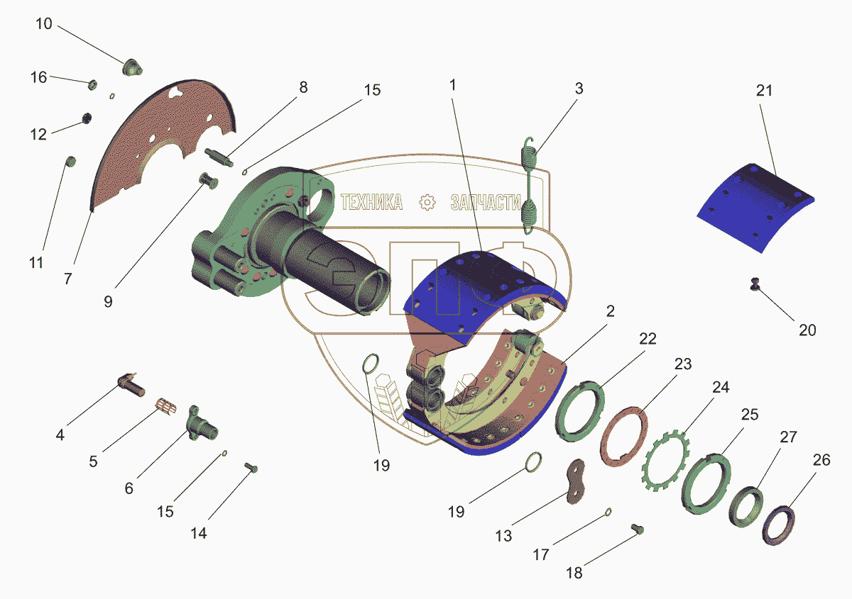 Каталог запасных частей к технике: МАЗ-437040 (Зубренок). Тормоз заднего колеса