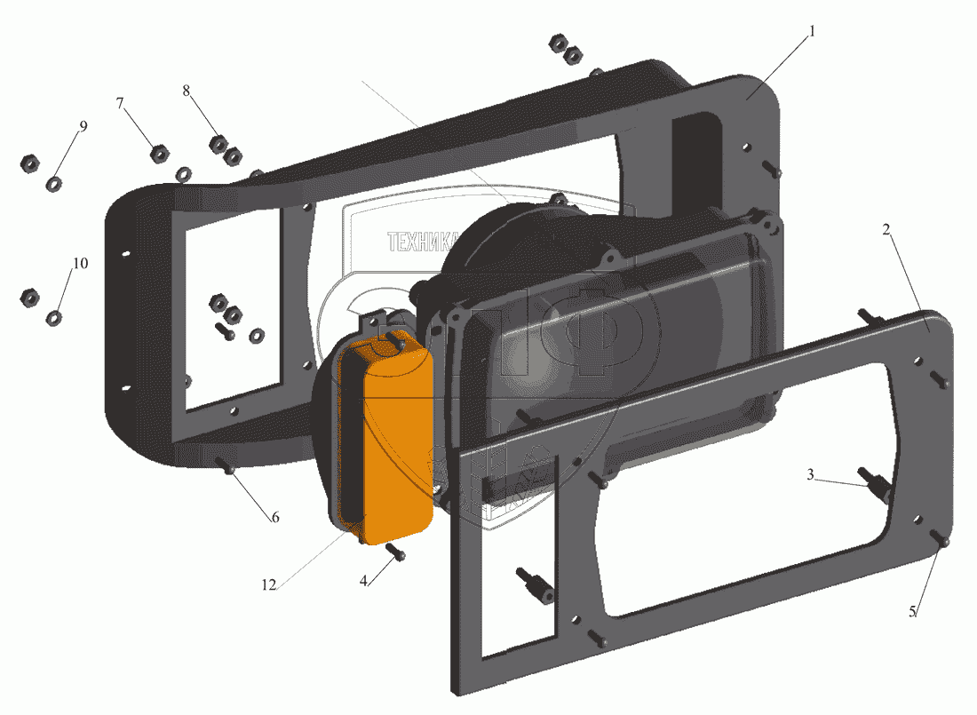 Каталог запасных частей к технике: МАЗ-437040 (Зубренок). Установка головных фар