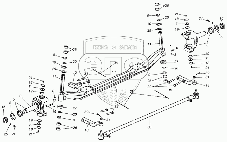 Каталог запасных частей к технике: МАЗ-437040 (Зубренок). Балка передней оси