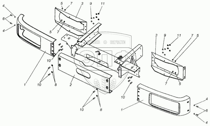 Каталог запасных частей к технике: МАЗ-437040 (Зубренок). Крепление бампера