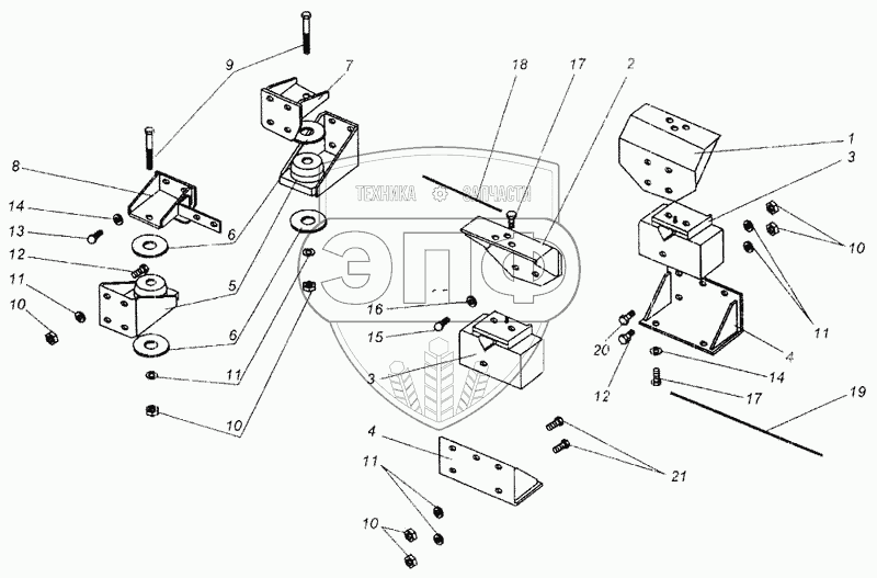 Каталог запасных частей к технике: МАЗ-437040 (Зубренок). Крепление двигателя МАЗ-437040