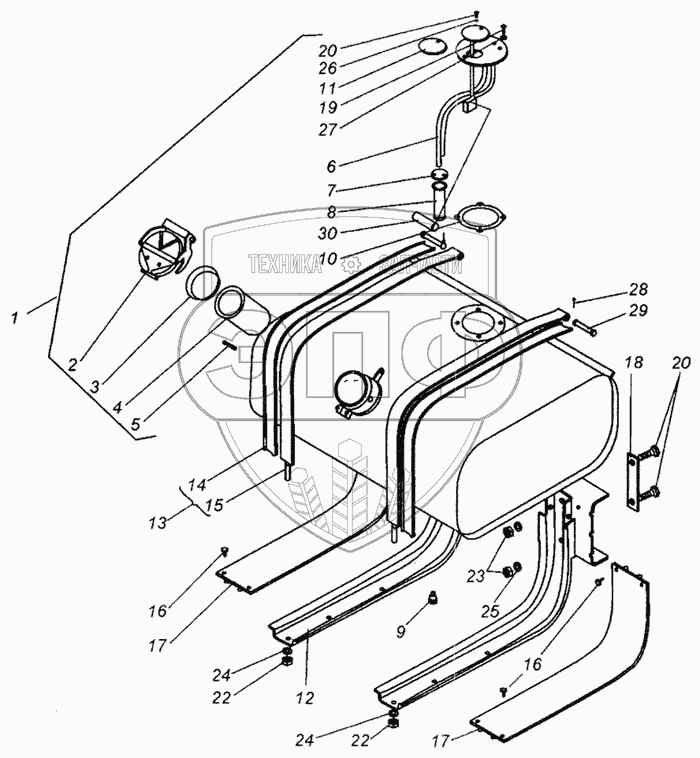 Каталог запасных частей к технике: МАЗ-437040 (Зубренок). Крепление топливного бака