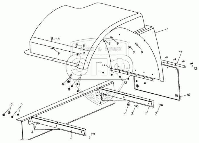 Каталог запасных частей к технике: МАЗ-437040 (Зубренок). Установка брызговиков передних колес