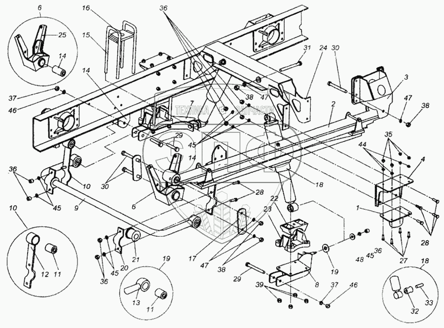 Каталог запасных частей к технике: МАЗ-437040 (Зубренок). Задняя подвеска