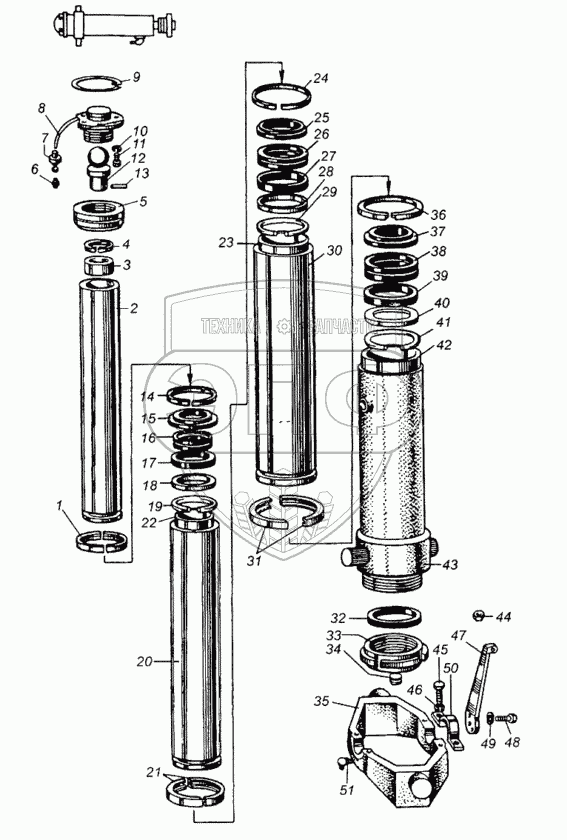 Каталог запасных частей к технике: МАЗ-504В. Механизм гидравлический подъема платформы