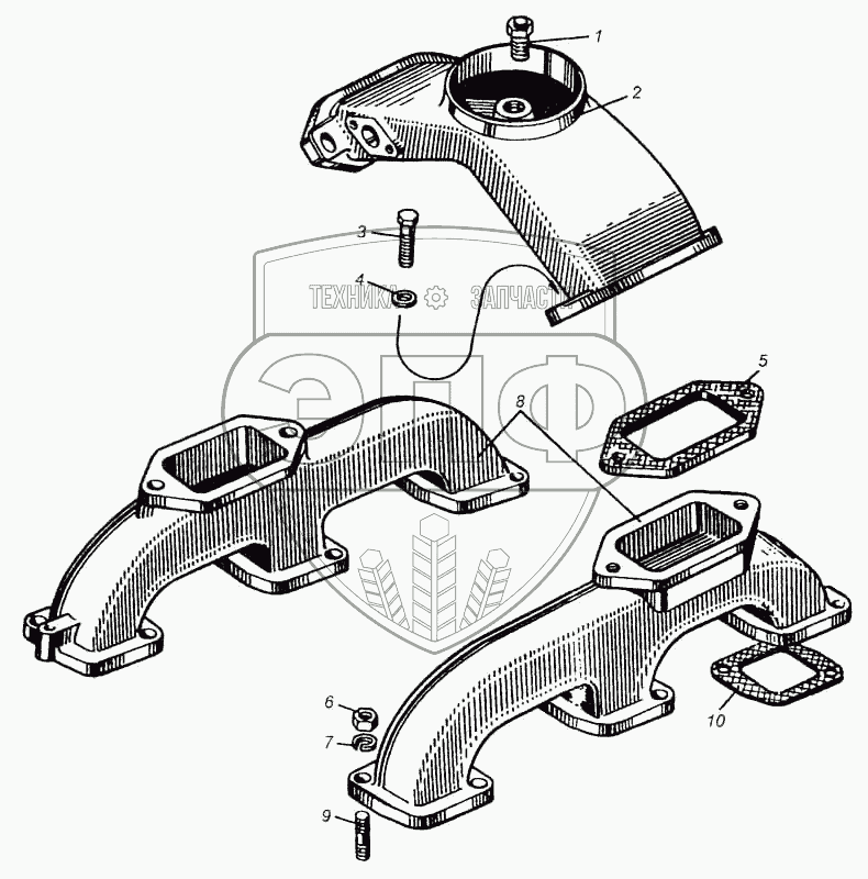 Каталог запасных частей к технике: МАЗ-5335. Коллектор впускной