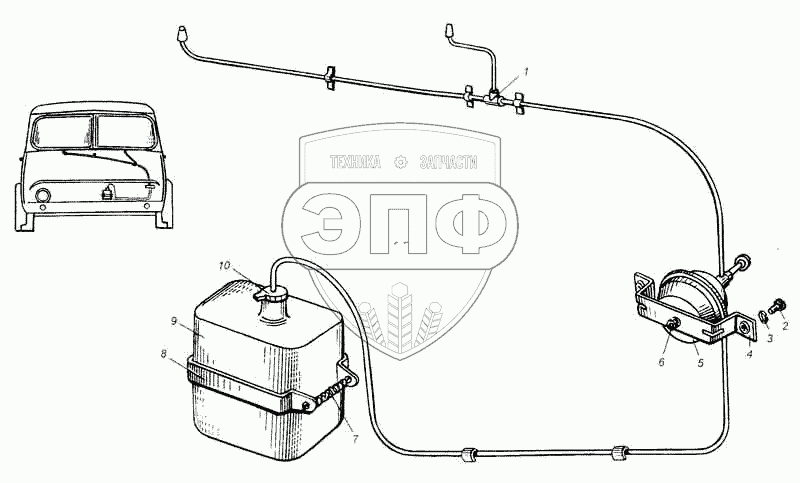 Каталог запасных частей к технике: МАЗ-5335. Омыватель ветровых стекол