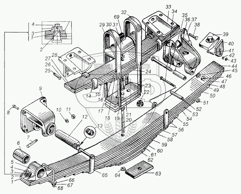 Каталог запасных частей к технике: МАЗ-5335. Рессора задняя