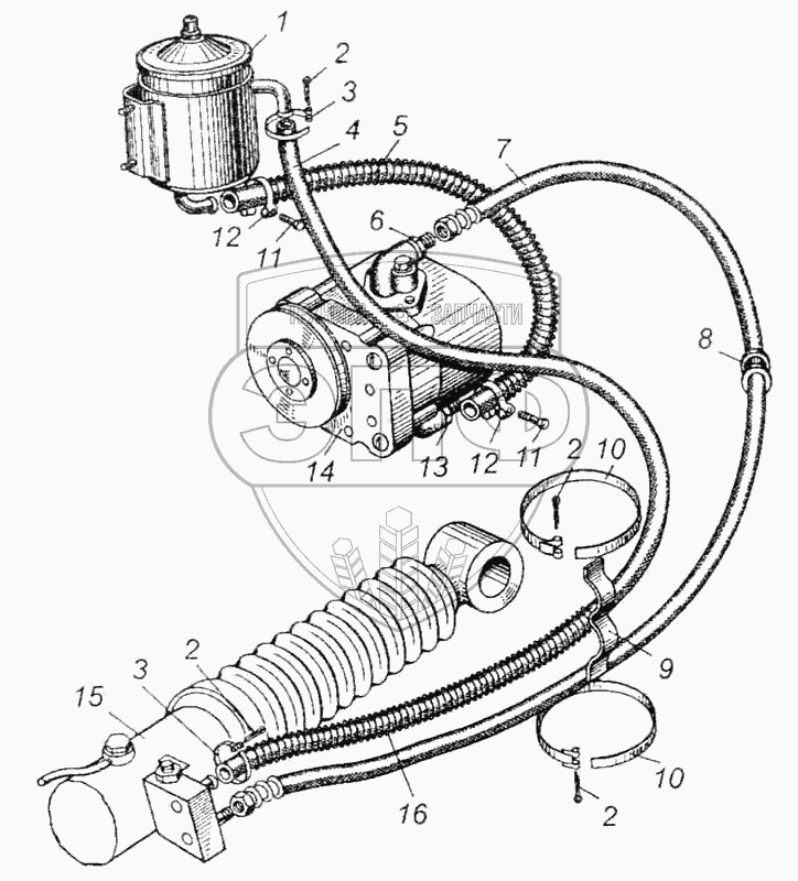 Каталог запасных частей к технике: МАЗ-5335. Трубопроводы гидроусилителя рулевого управления