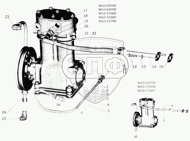 Каталог запасных частей к технике: МАЗ-5336. Установка пневмокомпрессора