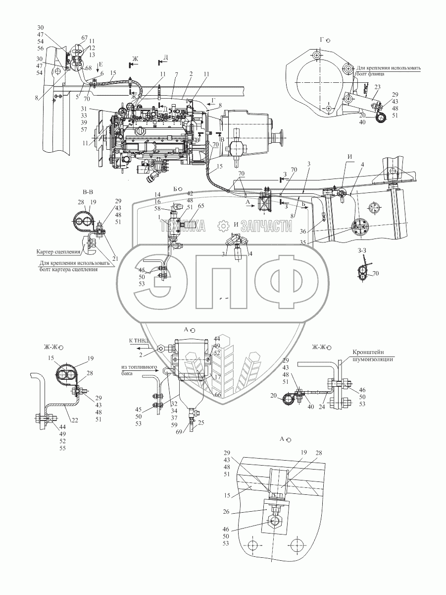 Каталог запасных частей к технике: МАЗ-533731. Крепление топливопроводов 533731-1104002-010